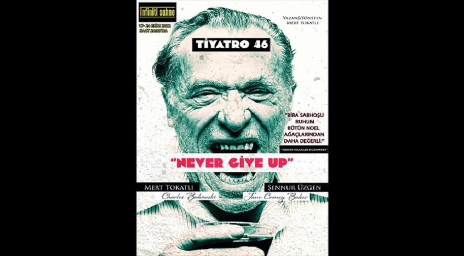 Henry Charles Bukowski’nin beş eserini,Freddie Mercury’i ve Beat Generation’nın en önemli ismi Jack Kerouac’ı dünyada ilk kez tiyatro oyununa uyarlayan ve bu ünvanla dünya tiyatro sanat literatürüne geçen Mert Tokatlının ikinci Henry Charles Bukowski uyarlaması ‘Never Give Up’ın altı sahnel
