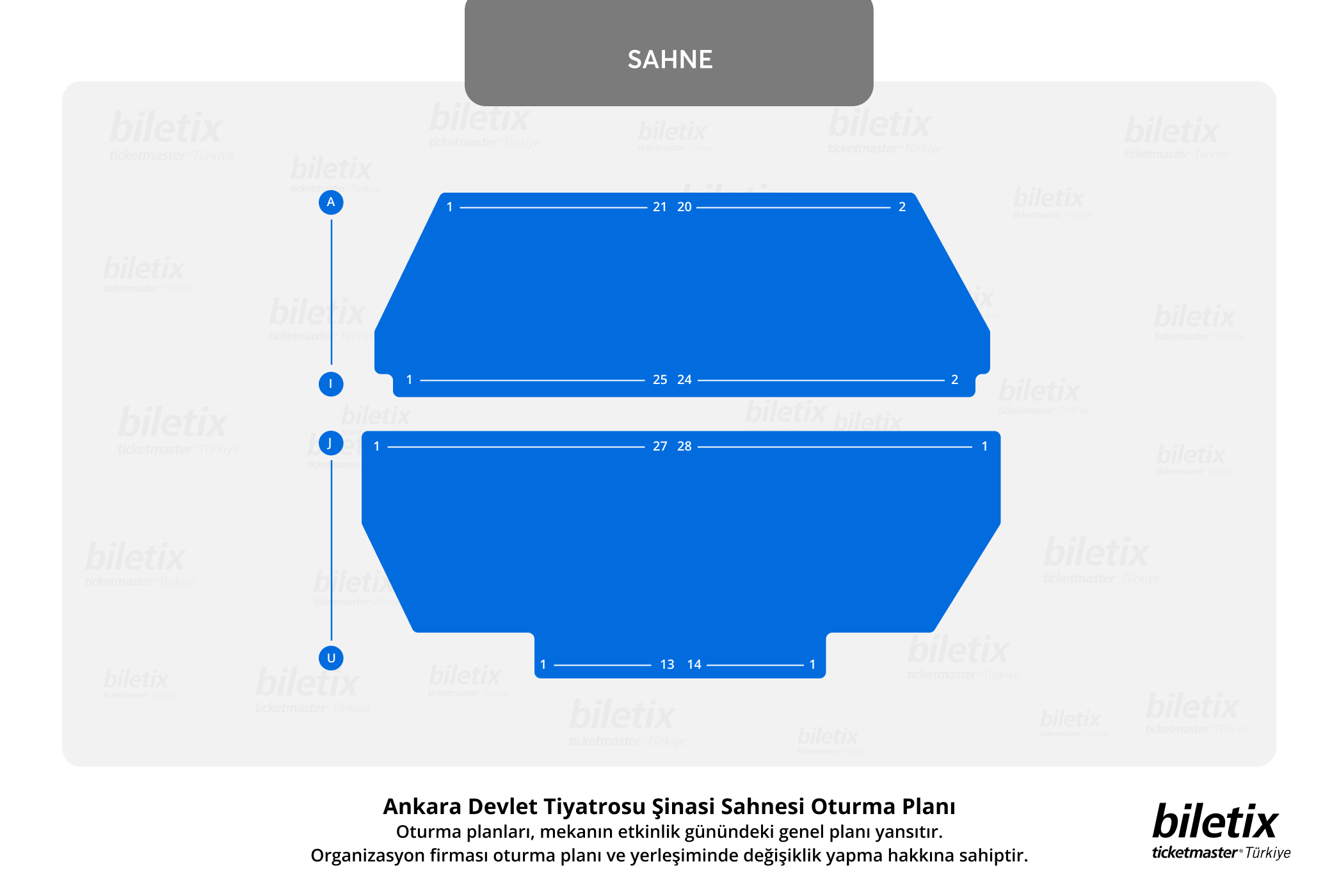 Tek kişilik koltuklar boş bırakılırsa, Biletix koltuklarınızı değiştirme hakkını saklı tutar.