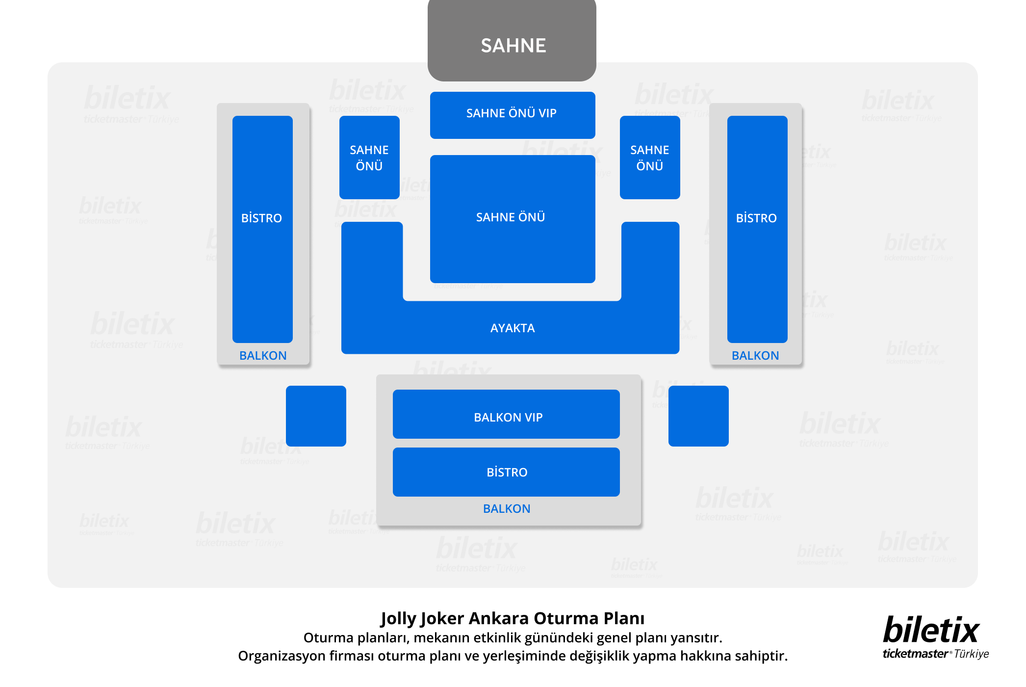 Tek kişilik koltuklar boş bırakılırsa, Biletix koltuklarınızı değiştirme hakkını saklı tutar.