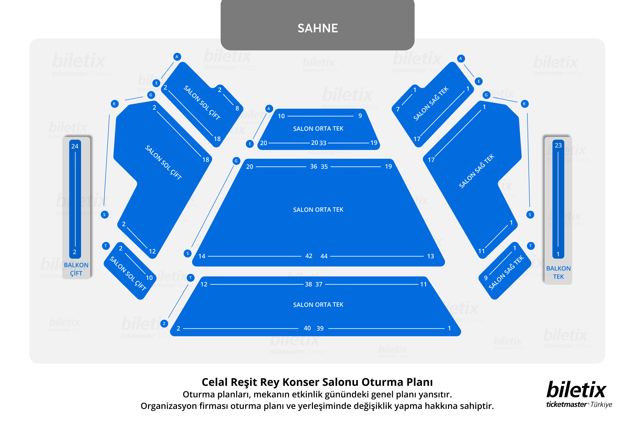 Tek kişilik koltuklar boş bırakılırsa, Biletix koltuklarınızı değiştirme hakkını saklı tutar.