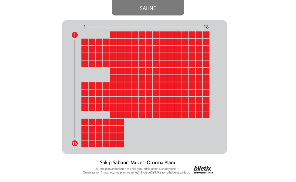 Biletix reserves the right to change your seats if single seats are left unoccupied.