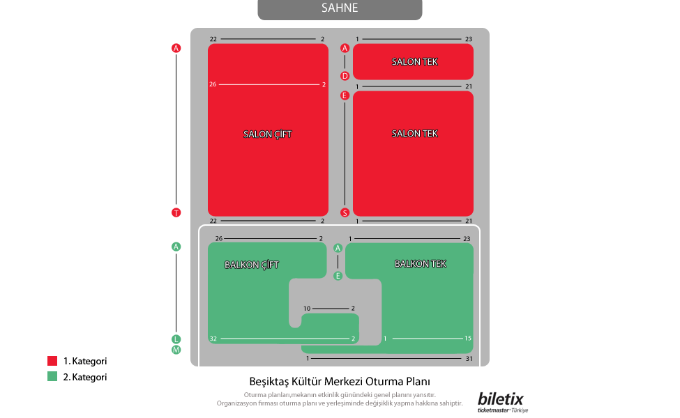 Tek kişilik koltuklar boş bırakılırsa, Biletix koltuklarınızı değiştirme hakkını saklı tutar.
