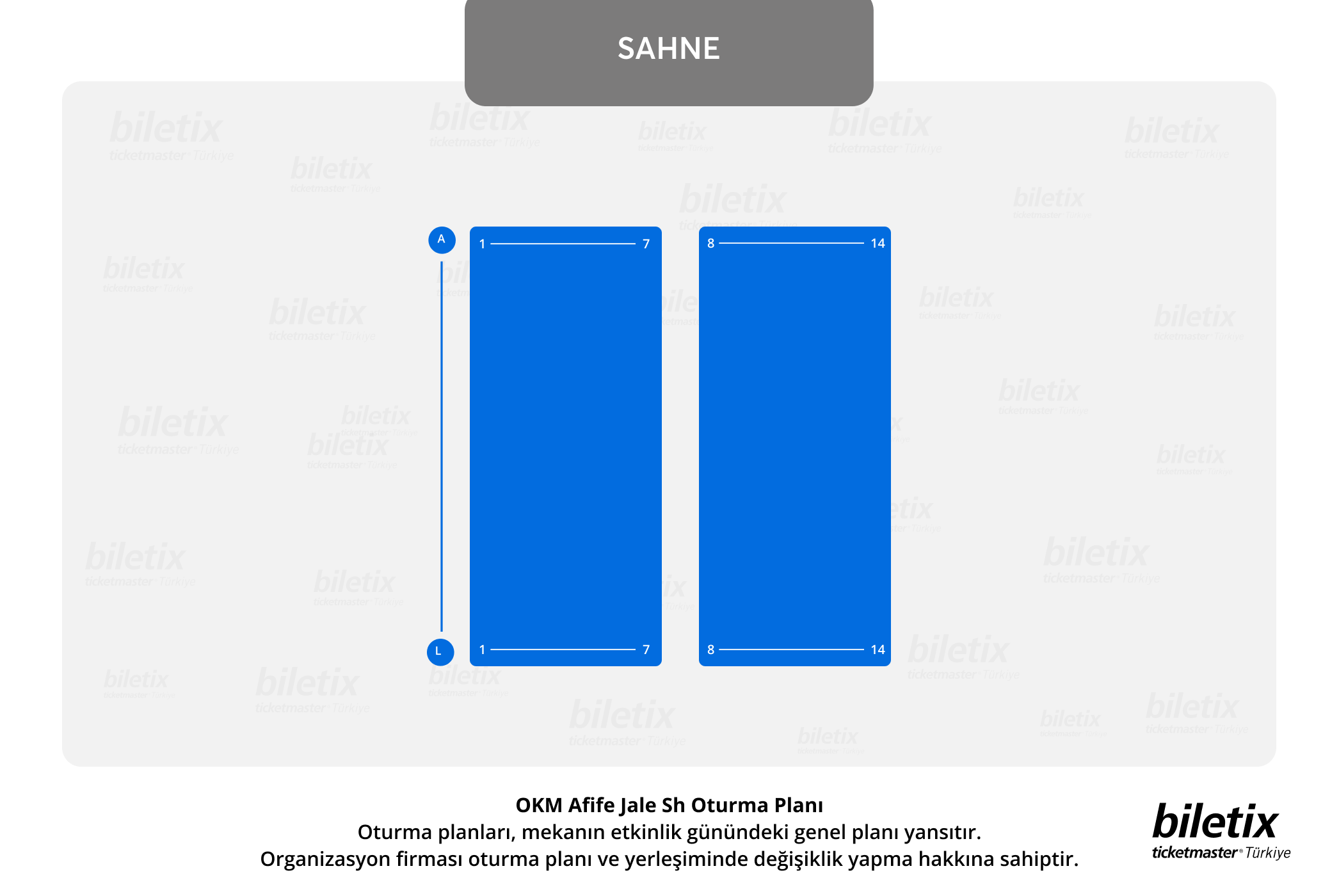 Tek kişilik koltuklar boş bırakılırsa, Biletix koltuklarınızı değiştirme hakkını saklı tutar.