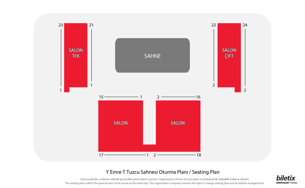 Biletix reserves the right to change your seats if single seats are left unoccupied.