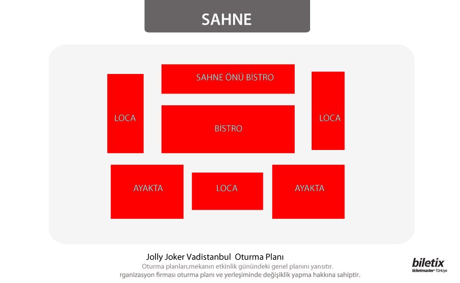 Biletix reserves the right to change your seats if single seats are left unoccupied.