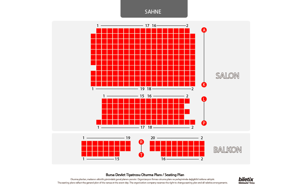 Biletix reserves the right to change your seats if single seats are left unoccupied.