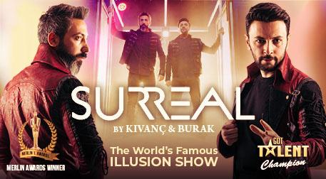 “MERLIN” and “GOT TALENT THE CHAMPIONS” awards winners, worlds famous illusionists Kıvanç and Burak are on stage with their extraordinary show “SURREAL” waiting to meet the audience.