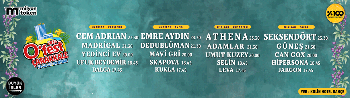 O Fest Çanakkale, 25 – 26 – 27 – 28 Nisan tarihlerinde Kolin Hotel’de.