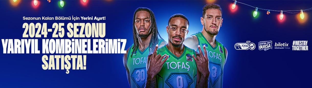 - TOFAŞ Basketbol Takımı 2024-2025 sezonu yarıyıl kombineleri; sezon içerisinde iç sahada oynanacak (Hazırlık, Avrupa kupası, muhtemel Basketbol Süper Ligi play-in ve play-off müsabakaları ve muhtemel Türkiye Kupası müsabakaları da dahil olmak üzere) tüm maçlarda geçerlidir.