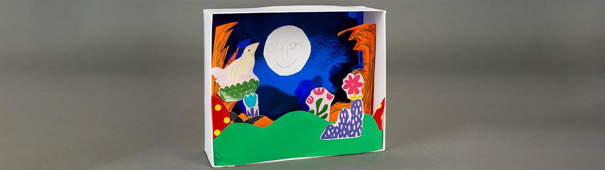 Bu atölyede çocuklar, tuhaf bitkiler ve hayali hayvanlarla dolu bir dünya tasarlayarak diorama sanatını keşfediyor. Renkler, dokular ve formlar arasında dolaşarak