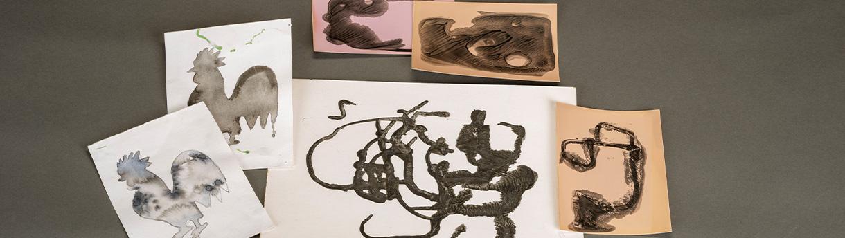 Mürekkebin akışkanlığını ve yüzey üzerinde oluşturduğu etkileri keşfetmeye yönelik bu atölyede, çocuklar mürekkebi fotoğraf kağıdı, dokulu kâğıt ve kuşe kâğıt gibi farklı yüzeylere püskürtme, damlatma ve baskı teknikleriyle uygulayarak çeşitli mürekkep katmanları oluşturuyor. Ardından, seçtikleri ta