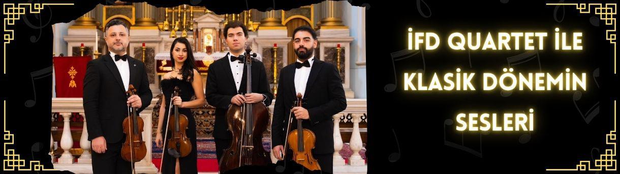 Kadıköy Surp Levon Kilisesi’nde sahne alacak İFD Quartet, her notasında dinleyiciyi klasik müziğin zarif ve etkileyici dünyasına çekiyor.