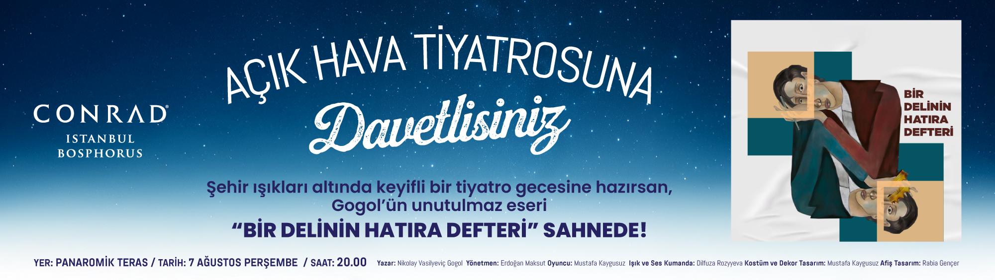 Bir Delinin Hatıra Defteri, 7 Ağustos'ta Conrad Istanbul Bosphorus Panaromik Teras'ta sizlerle...