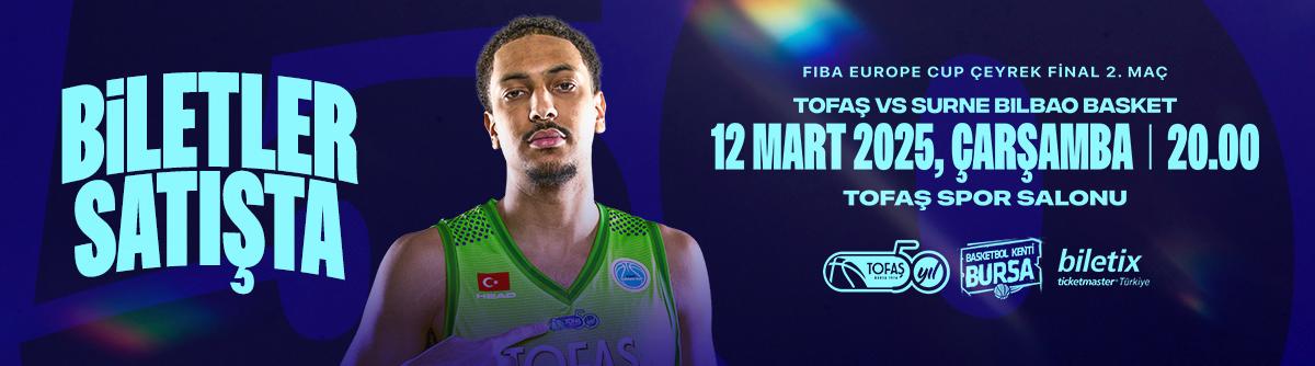 Avrupa kupalarında ülkemizi FIBA Europe Cup’ta temsil eden TOFAŞ Basketbol Takımı, çeyrek final mücadelesinde İspanyol temsilcisi Surne Bilbao Basket ile Bursa’da karşı karşıya geliyor.