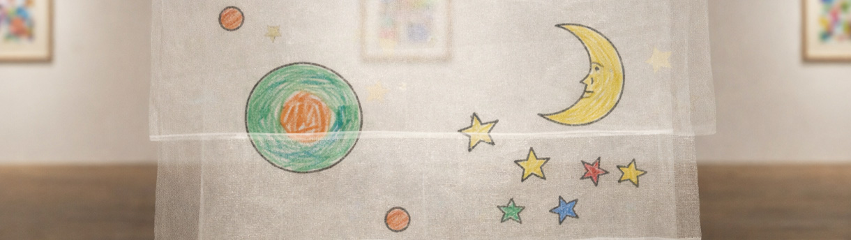 Çocuklar, bir görsel sahne tasarlayarak onu çeşitli imgelerle genişletiyor. Figürleri farklı tül katmanlarına yerleştirerek hikâyeyi derinlik ve mekânla yeniden kurguluyorlar.