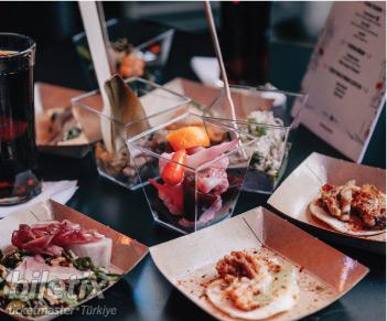 "Yeniden Çiçek Pasajı" etkinliğinde yeni nesil şeflerin kendilerine ait lezzet köşelerinde geceye özel hazırladıkları mezeleri ikram ettiğ